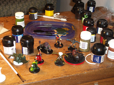 I thought I would post some pics of what else I've been working on. In my spare time I like to paint plastic figures for one of my games that's sitting in my closet. I've been working on them with the ever-so-lovely RachelKiah, and we've already finished four of them in just a couple of weeks.
